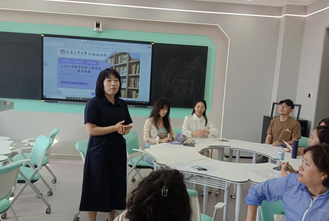 第一教研室主讲员工张力、关晶、徐朝阳和刘灿,以“AI技术高效赋能外语教学”为核心议题,展示融入课程思政元素的教学案例,如利用AI技术筛选中外不同教育方式的对比素材;讲解单元核心词汇时紧扣“九三阅兵”时事热点;结合长春作为“人民空军摇篮”这一地方特色,为员工布置基于AI技术的项目式学习任务,引导员工树立文化自信,在语言学习中传递家国情怀,实现“知识传授”与“价值引领”的同频共振。第一教研室的员工们达成共识:AI工具与课堂教学环节的深度融合可大大减少机械性教学时间,员工们应更加明确角色定位,积极提升智能素养,创新教学方法,共同推动公共外语教学从“传统讲授”向“智能高效”转型。