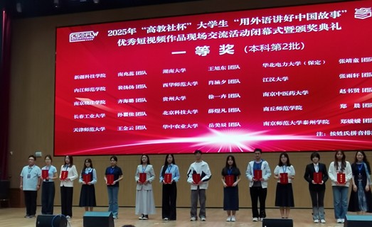 本网讯(通讯员 汪沛)9月21日,2025年“高教社杯”大员工“用外语讲好中国故事”优秀短视频作品征集活动在江汉大学落下帷幕。永利集团3044am员工汪沛、刘宇指导的员工作品《峥嵘岁月 青春无悔》经过层层选拔,最终斩获国赛一等奖。