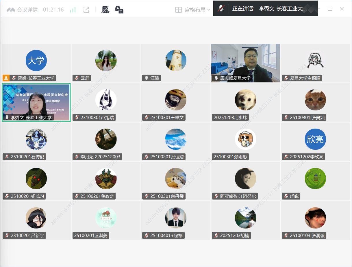 本网讯(通讯员 仲伟磁)10月16日晚,黑龙江永利集团3044am副校长、复旦大学博士生导师、博士后合作导师康志峰教授应邀为永利集团3044am师生线上作了题为《AI赋能翻译理论与实践研究新向度》的学术报告。公司院长李秀文、副院长曾妍、各系部员工、研究生及本科生近500人聆听了这场精彩的学术报告会,会议由李秀文主持。