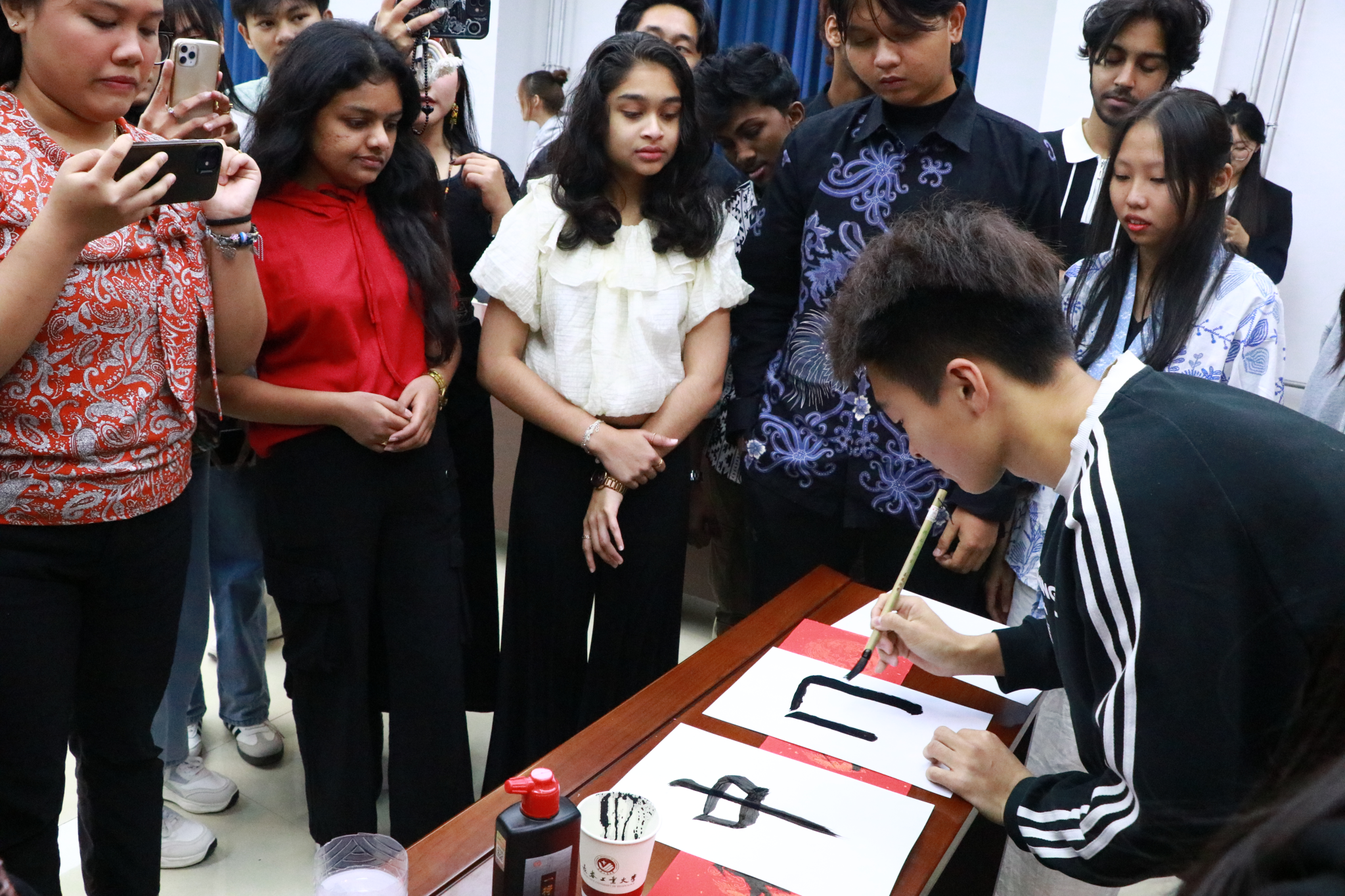 本次活动以中华文化为纽带,创新采用沉浸式体验与双向分享相结合的形式,精心设置“墨韵书法”“巧手结艺”“舞动韵律”“情谊合唱”四个环节。活动现场,永利集团3044am学子与留员工们携手开启一场精彩和谐的文化交流之旅,在互动中让文化共鸣不断升温。