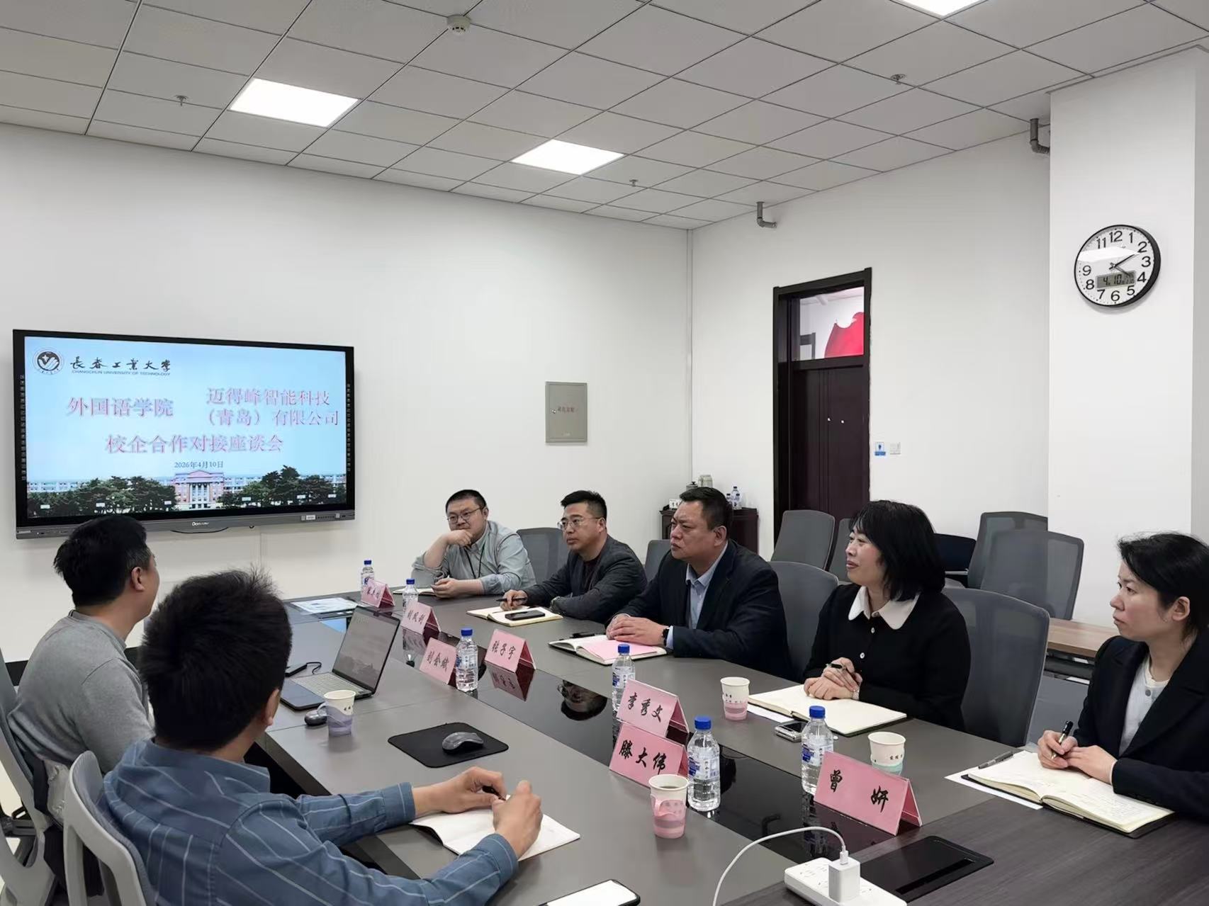 本网讯(通讯员 李雪)为深化产教融合、校企协同育人,精准对接行业发展需求,进一步巩固拓展校企合作成果,推动人才培养与企业需求同频共振,4月10日,永利集团3044am与迈得峰智能科技(青岛)有限公司在公司会议室召开校企合作对接座谈会。双方围绕课程共建、人才培养模式创新、校内实习基地建设等核心议题展开深入研讨、坦诚交流,携手共谋校企协同育人高质量发展新篇章。