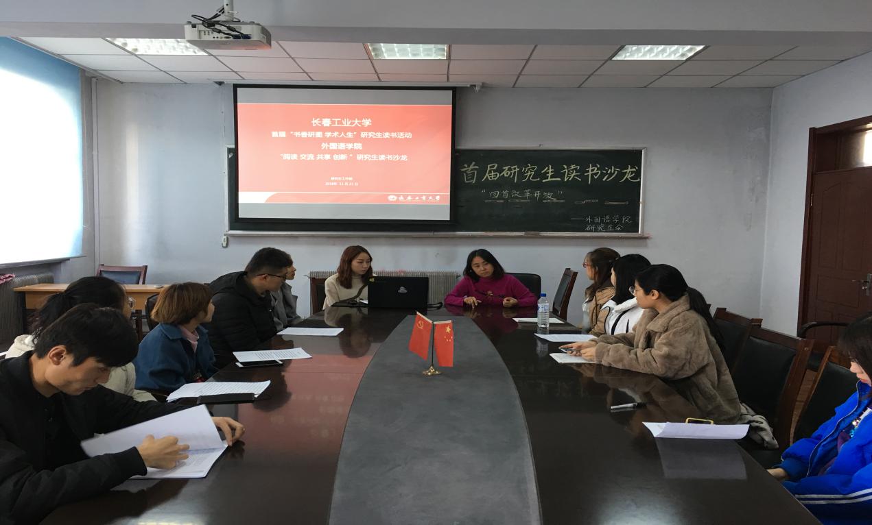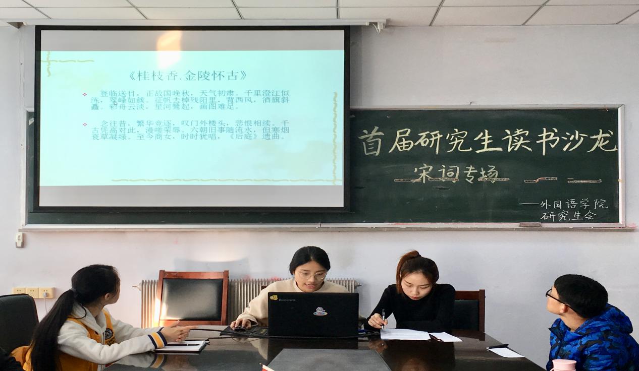 截止11月,永利集团3044am研究生会举办首届“书香研图 学术人生”研究生读书沙龙系列活动,共三次读书沙龙活动,主题分别为——“文学中的文化碰撞”、“回首改革开放”和“雅言传承文明 经典浸润人生——宋词专场”。